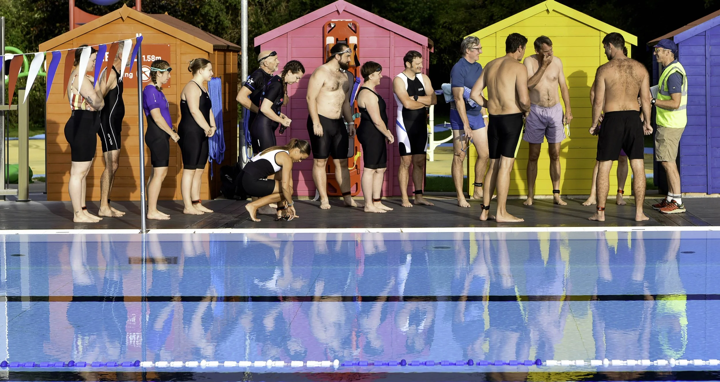 The swim is in the outdoor pool, the bike ride is through the surrounding countryside, and the run is along the Kennet and Avon Canal.